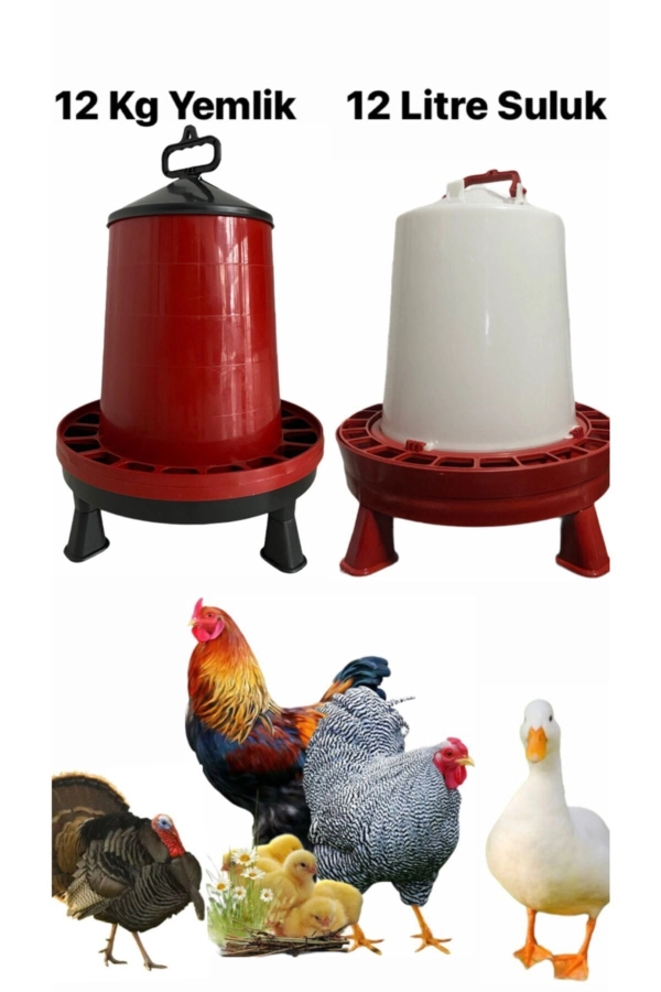 Ayaklı Yemlik Ve Suluk 2li Set 12 Kg Tavuk Yemliği Hindi Kanatlı Kümes Hayvanı Yemlikleri